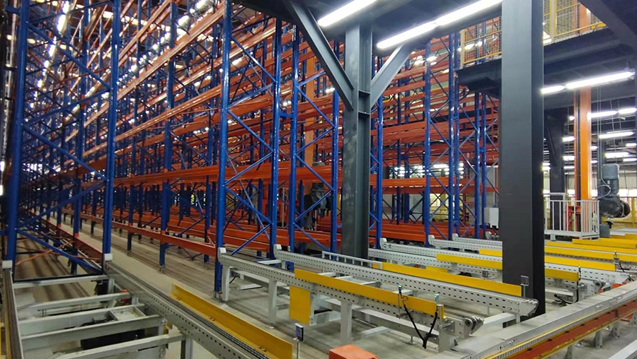 本方案總貨位2856個,高度10m。由貨架、巷道堆垛機系統(tǒng)及巷道設(shè)備(天軌、地軌、滑觸線)、輸送系統(tǒng)、計算機調(diào)度監(jiān)控系統(tǒng)(WCS)和倉庫管理系統(tǒng)(WMS)和托盤等組成。提高3倍以上倉儲空間面積,綜合生產(chǎn)成本降低20%以上。